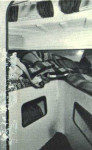 Lined throughout. Headroom 6'3" (1905). Berths 6'4" (1930) with stowage under. Large galley area 7sq-ft (.65) and sink size 14" x 11" x 7" (355 x 280 x 173) with storage under. Chart table 32"x 29" (812 x 736) with drawer and stowage under. Oilskin hanging locker volume 1212cu-ft (.34) with sealed drip tray. Teak faced lockers with sliding doors and wide shelf above. Alloy grab rails. Fresh water pump. Shelf Area 12sq-ft (1.12). Locker volume 35cu-ft (.99). |