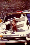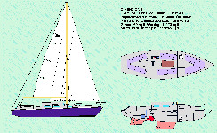 Fitted mattresses. Salt water pump and pipe to sink. Toilet hand basin pump. Flush toilet fitted. Drop leaf table in saloon. 28lb Thames anchor 5 fathoms 5⁄16" chain, 25 fathoms 1 ¼" nylon. 10 interior lights and fused switch panel. Port and starboard navigation lights, stern light, mast light. 51 amp. hour battery fitted. Gimbaled cooker with fiddles and regulator, two 4lbs gas bottles. Stainless steel pulpit and stern rail, S/S stanchions and vinyl covered life lines by Lewmar. |